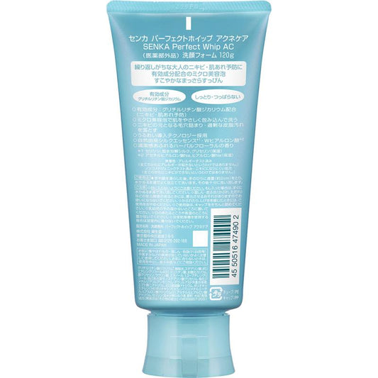 センカ パーフェクトホイップ アクネケア 120g4550516474902 ニキビ 肌あれ 予防 洗顔