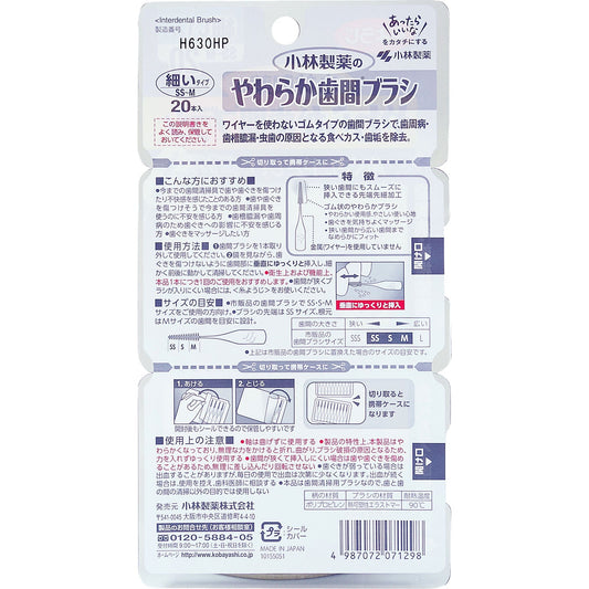 メール便 小林製薬 やわらか歯間ブラシ I字型 SS−M 20本 4987072071298
