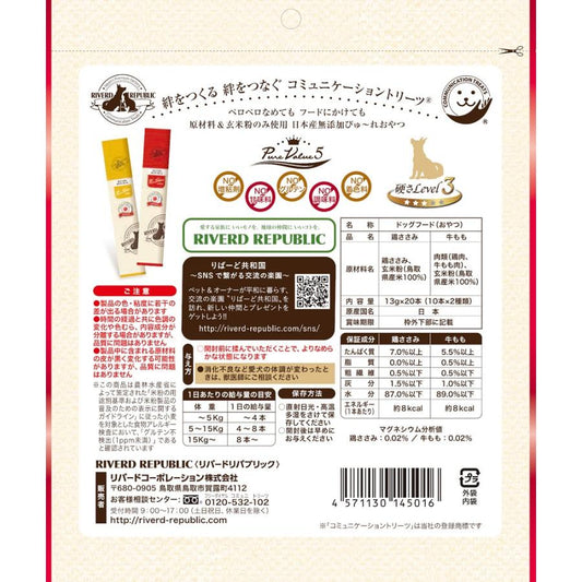 メール便 いぬぴゅ〜れ 無添加ピュア PureValue5 鶏ささみ 牛もも 13g×10本×2種 4571130145016 犬 おやつ しつけ