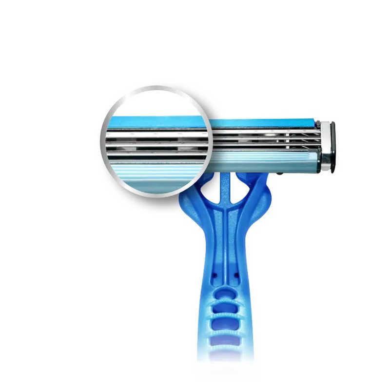 ●刃を階段式に配列する事によって髭を段階的にカットし、肌への負担を軽減・しっかり剃れます。