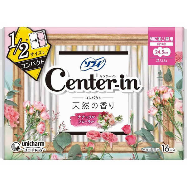 ユニ・チャーム ソフィ センターイン コンパクト1/2 ナチュラルフローラルの香り 特に多い昼用 羽つき 16コ入り 4903111312474