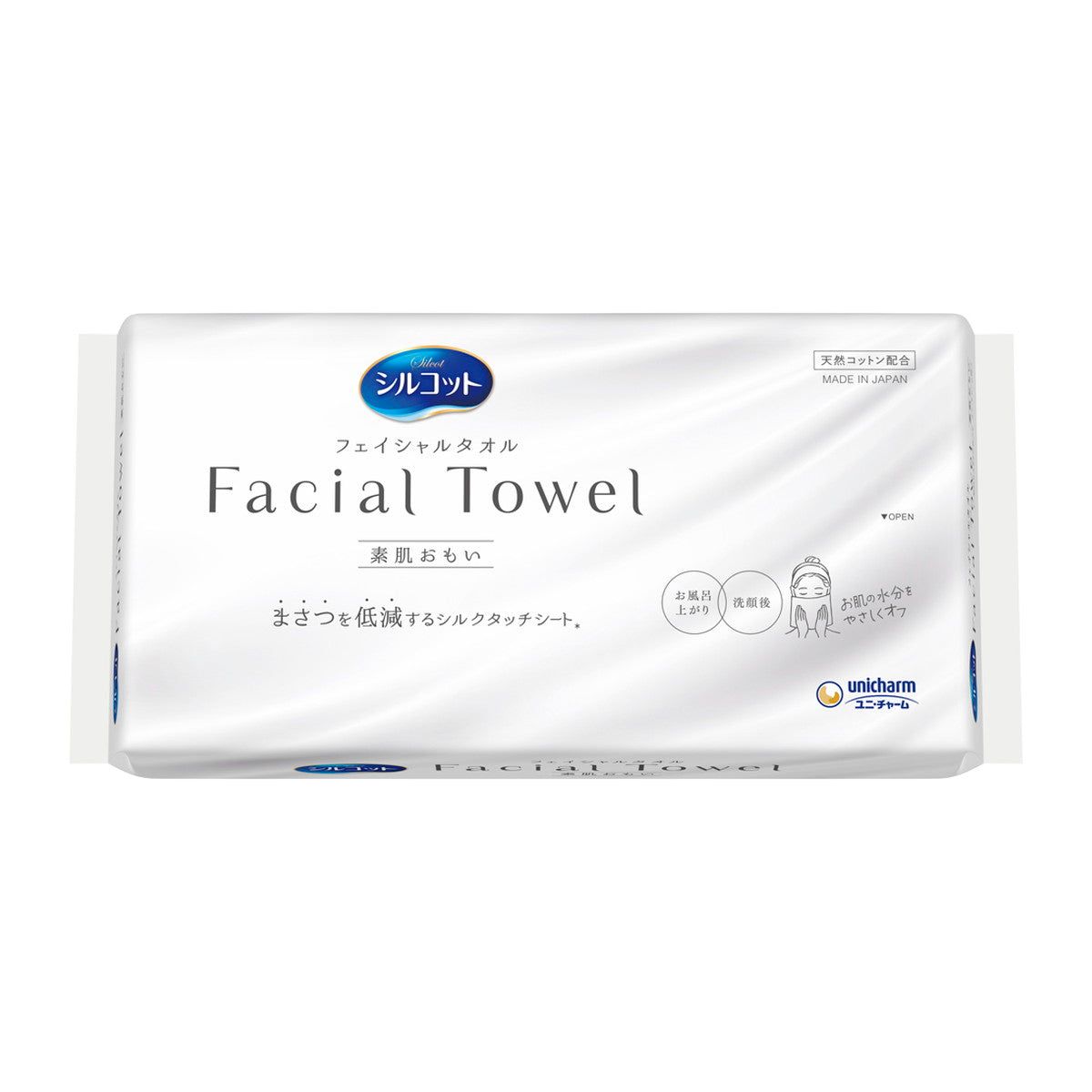 ●まさつ低減シルクタッチシート*で洗顔後・お風呂上がり後のお顔の水分をやさしくオフ。