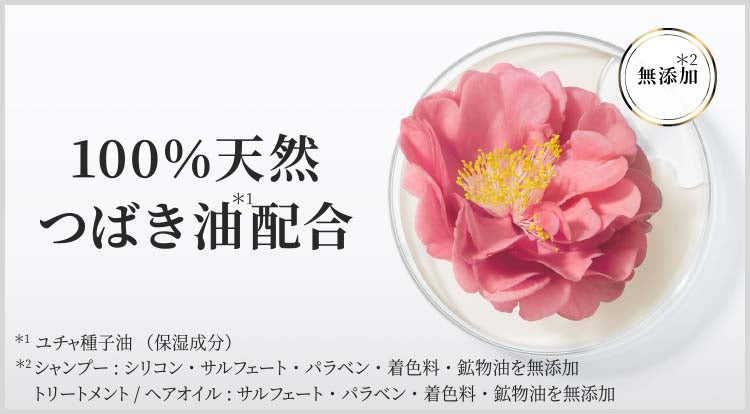 ●100%天然つばき油*配合処方で内側からシルクのようなつるん髪へ