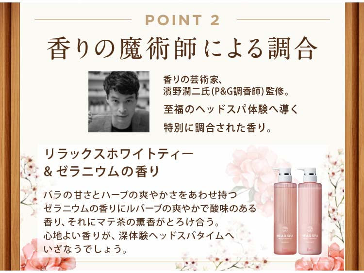 ●リラックスホワイトティー&ゼラニウムの香り深体験ヘッドスパで、地肌ケア&ヘアケア